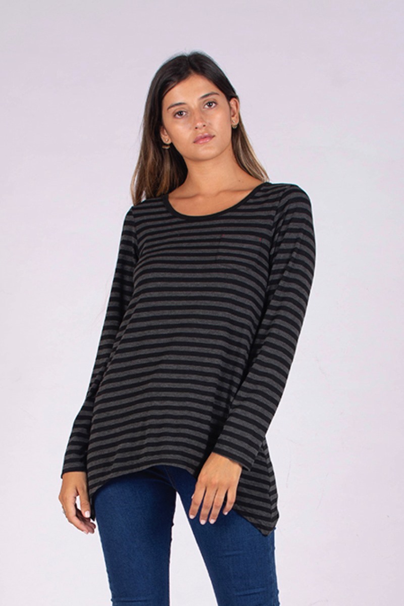 REMERA LARGA C/ BOLSILLO EN PICO